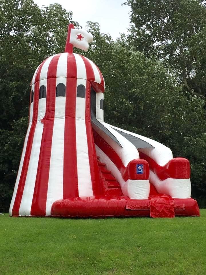 Standing an impressive 23ft tall, welcome to our Helter Skelter Inflatable Slide!